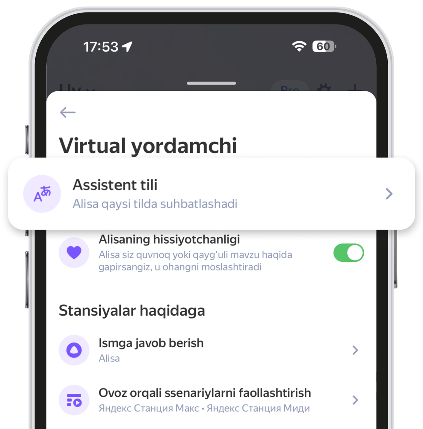 Alisa AI yordamchisining tili