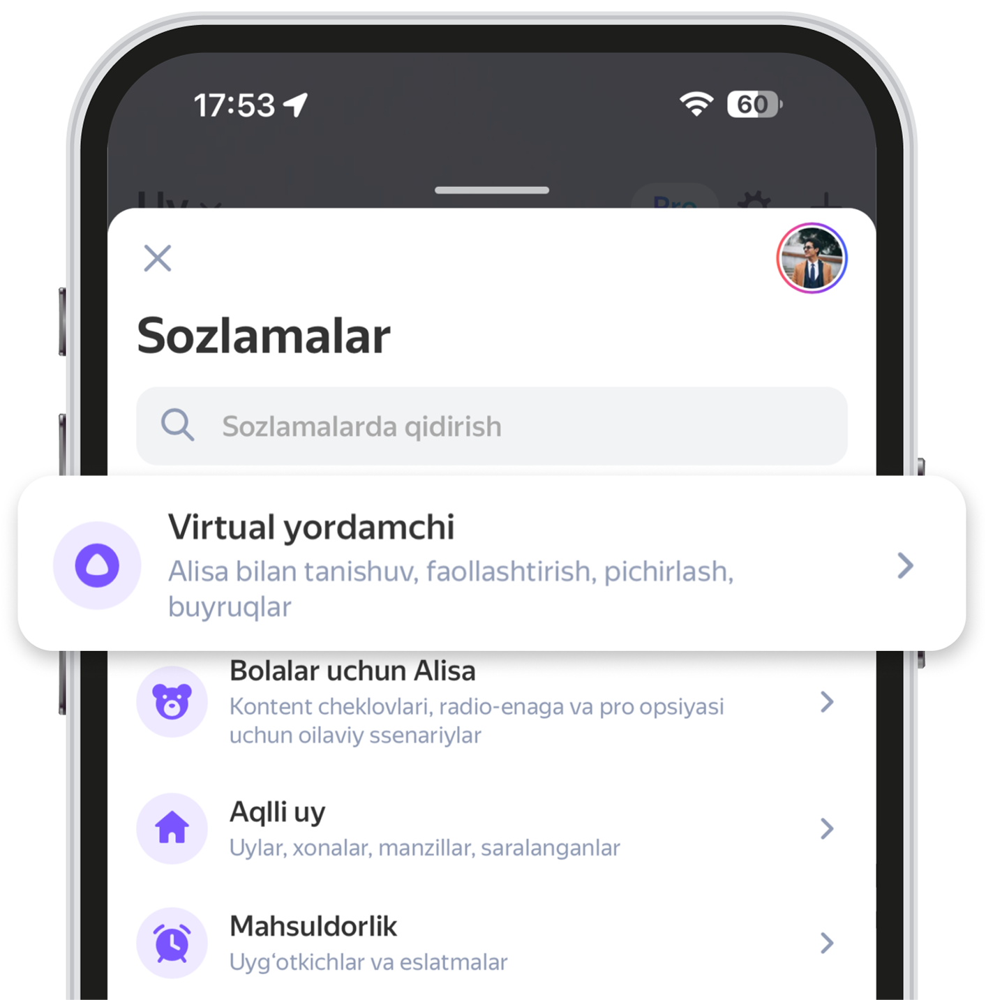 Ilova interfeysi tilini telefon sozlamalarida oʻzgartirish mumkin:
